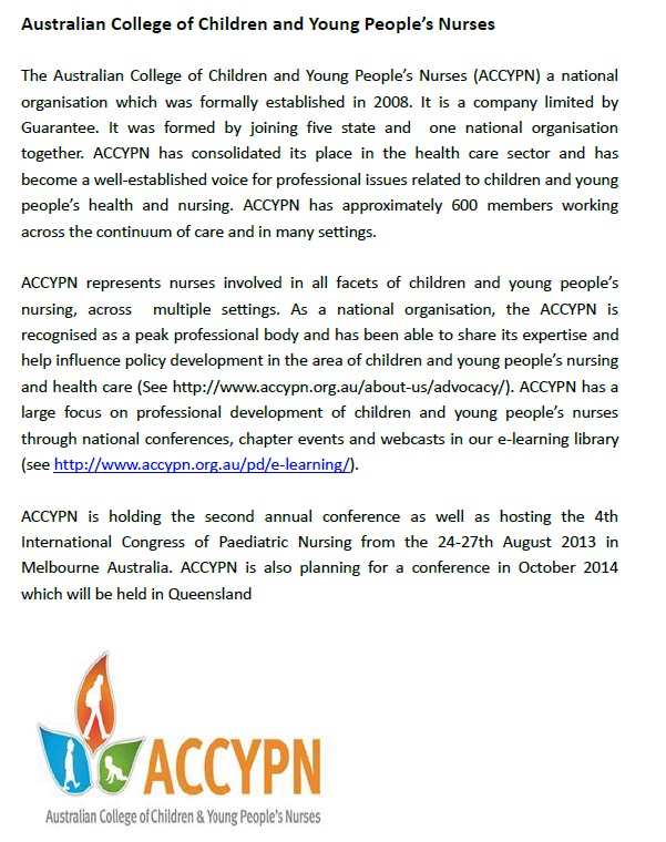 1) Australian College of Children and Young People’s Nurses,