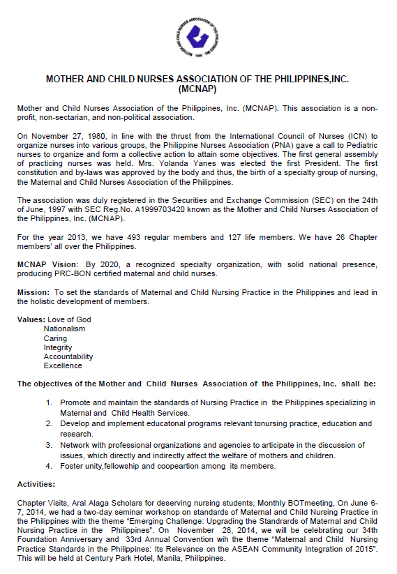 6) Mother and Child Nurses Association of the Philippines,